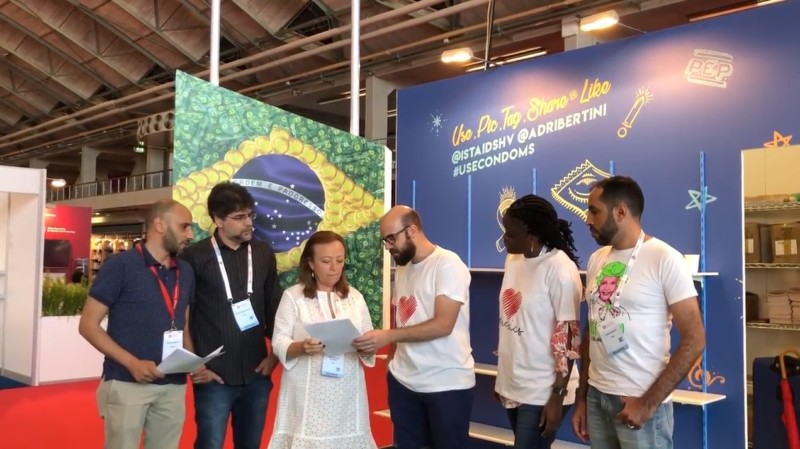 En la imagen, Dra. Benzaken recibe de las manos de representantes de organizaciones de la sociedad civil una carta durante el Congreso Mundial de SIDA de 2018.