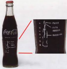 Los billetes fueron sellados con denuncias de crímenes de Estado y las botellas fueron impresas con mensajes como «Yankees, vuelvan a casa», una receta para hacer un explosivo doméstico del tipo Molotov y otros textos abordando el imperialismo de EEUU y el intercambio global de mercancías .