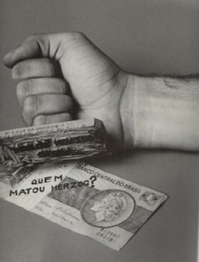 Una nota usada de Cruzeiro (la moneda en la época) fue sellada con la pregunta: ¿Quién mató a Vladimir Herzog? Vladimir Herzog fue un periodista asesinado durante una sesión de tortura, cuya muerte fue negada por las autoridades de la época.