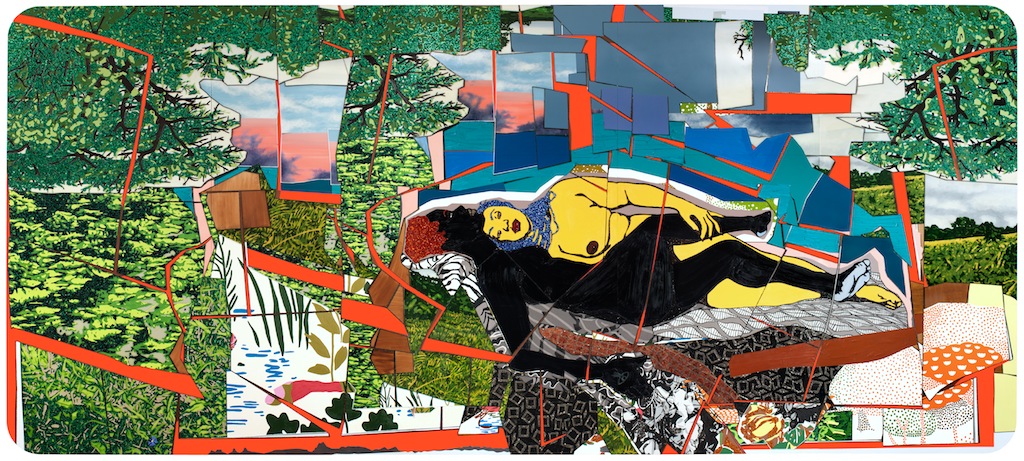Mickalene Thomas. Sonho: Deux Femmes Noires, 2012; strass, acrílico, óleo e esmalte no painel de madeira; 108 x 240 pol Cortesia do artista.