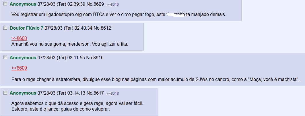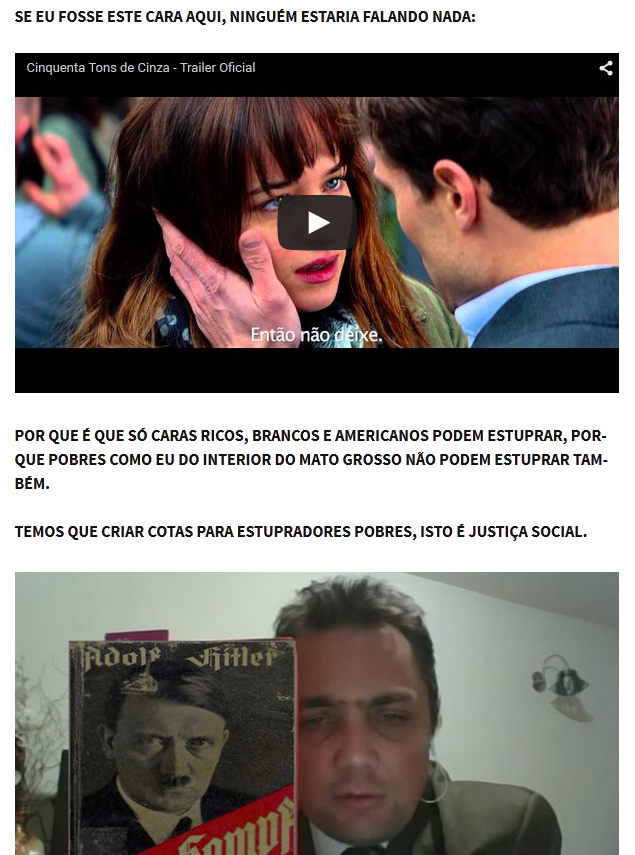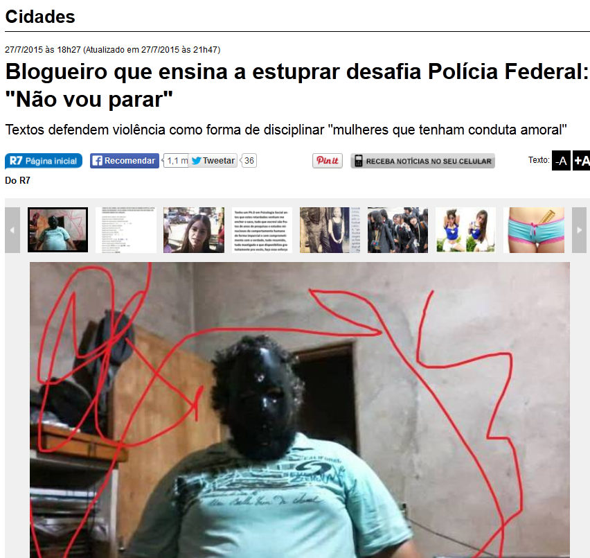 Mas Robson Otto não é o autor do mais novo site de ódio divulgado pela imprensa (com exceção do Correio Braziliense, que acertadamente optou por não imprimir o nome do site — que é como todos devem agir: denuncie, nunca divulgue). Marcelo somente regurgitou textos antigos, publicados desde a época do Silvio Koerich (e até antes, em comunidades mascus no Orkut), traduziu outros de sites americanos que falam de “filosofia do estupro”, e aproveitou trechos de seus seguidores. Assim, inventou um “guia” de como estuprar mulheres e meninas.