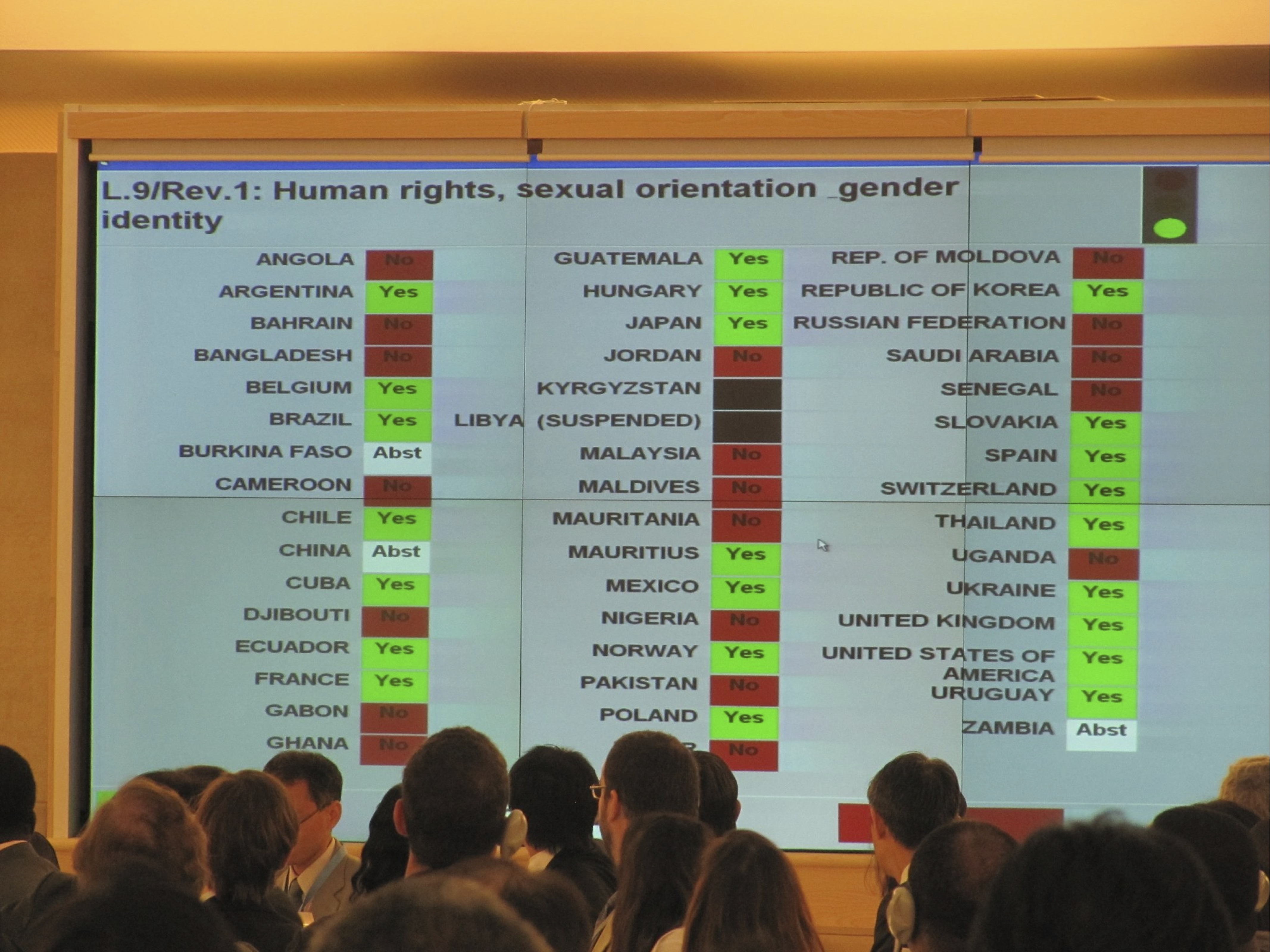 (Geneva, June 17, 2011) In a groundbreaking achievement for upholding the principles of the Universal Declaration of Human Rights (UDHR), the United Nations Human Rights Council has passed a resolution on human rights violations based on sexual orientation and gender identity (L.9/Rev.1).