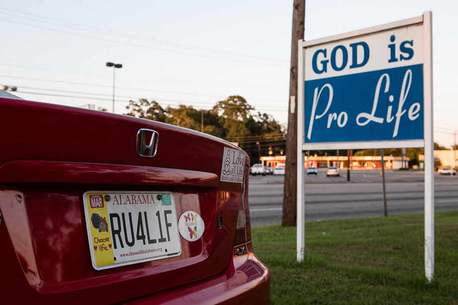 A pro-life license plate on a car in Montgomery, Ala. (William Widmer, special to ProPublica)