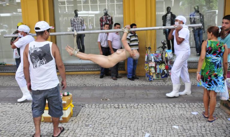 Berna Reale is a Pará performer with an extensive production of installations. Its brand is to occupy public spaces with images and dense evocations, such as the image that illustrates this post. His work is internationally recognized. Bern is a criminal expert and her central theme is violence in its multiple manifestations, a critical approach to the material and symbolic aspects of violence and the silencing processes present in the most diverse instances of society.